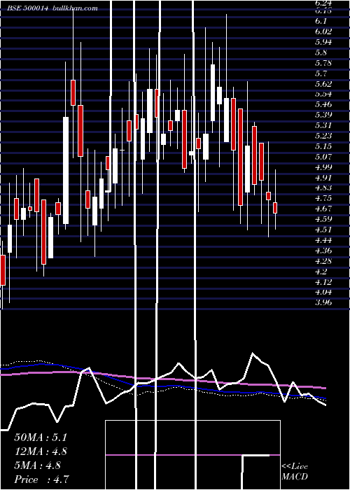 | Date | Closing | Open | Range | Volume | Fri 26 December 2025 | 4.69 (-2.29%) | 4.80 | 4.57 - 4.87 | 0.9194 times | Wed 24 December 2025 | 4.80 (0.21%) | 4.91 | 4.69 - 4.91 | 0.753 times | Tue 23 December 2025 | 4.79 (-2.64%) | 4.75 | 4.75 - 5.02 | 1.8405 times | Mon 22 December 2025 | 4.92 (2.71%) | 4.77 | 4.77 - 4.94 | 0.4137 times | Fri 19 December 2025 | 4.79 (-0.21%) | 4.70 | 4.70 - 4.94 | 0.3398 times | Thu 18 December 2025 | 4.80 (-1.84%) | 4.99 | 4.76 - 4.99 | 0.2818 times | Wed 17 December 2025 | 4.89 (1.66%) | 4.90 | 4.70 - 4.96 | 1.703 times | Tue 16 December 2025 | 4.81 (-5.13%) | 5.23 | 4.51 - 5.23 | 2.7408 times | Mon 15 December 2025 | 5.07 (2.63%) | 4.85 | 4.85 - 5.08 | 0.3876 times | Fri 12 December 2025 | 4.94 (1.86%) | 4.93 | 4.61 - 5.07 | 0.6205 times | Thu 11 December 2025 | 4.85 (-1.82%) | 4.81 | 4.71 - 4.94 | 0.4384 times |