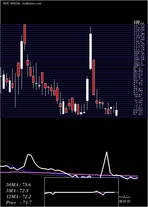 | Date | Closing | Open | Range | Volume | Fri 26 December 2025 | 71.70 (-4.27%) | 77.00 | 71.50 - 77.00 | 0.8591 times | Wed 24 December 2025 | 74.90 (3.32%) | 75.90 | 70.53 - 75.90 | 1.9773 times | Tue 23 December 2025 | 72.49 (4.98%) | 67.01 | 67.01 - 72.50 | 2.0215 times | Mon 22 December 2025 | 69.05 (-1.78%) | 68.05 | 68.05 - 69.06 | 1.4529 times | Fri 19 December 2025 | 70.30 (-0.99%) | 71.00 | 70.30 - 74.50 | 0.4675 times | Thu 18 December 2025 | 71.00 (-4.04%) | 71.00 | 71.00 - 71.00 | 0.6317 times | Wed 17 December 2025 | 73.99 (0%) | 74.00 | 73.99 - 74.00 | 0.6886 times | Tue 16 December 2025 | 73.99 (4.95%) | 70.29 | 70.29 - 74.00 | 0.6317 times | Mon 15 December 2025 | 70.50 (-4.73%) | 70.50 | 70.50 - 70.50 | 0.3159 times | Fri 12 December 2025 | 74.00 (2.78%) | 68.70 | 68.70 - 74.00 | 0.9539 times | Thu 11 December 2025 | 72.00 (0%) | 72.00 | 72.00 - 72.00 | 0.1832 times |