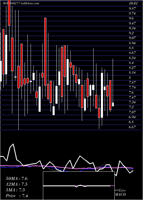 | Date | Closing | Open | Range | Volume | Mon 29 December 2025 | 7.40 (2.64%) | 7.31 | 7.30 - 8.59 | 1.0241 times | Fri 26 December 2025 | 7.21 (-2.04%) | 7.80 | 7.15 - 7.80 | 1.5161 times | Wed 24 December 2025 | 7.36 (-6.12%) | 7.85 | 7.32 - 7.90 | 1.9711 times | Tue 23 December 2025 | 7.84 (0%) | 7.84 | 7.30 - 7.85 | 0.7906 times | Mon 22 December 2025 | 7.84 (3.43%) | 8.00 | 7.26 - 8.00 | 0.7523 times | Fri 19 December 2025 | 7.58 (2.29%) | 7.33 | 7.15 - 7.59 | 0.3807 times | Thu 18 December 2025 | 7.41 (0.95%) | 7.30 | 7.04 - 8.10 | 2.6485 times | Wed 17 December 2025 | 7.34 (-8.02%) | 8.00 | 7.30 - 8.00 | 0.4513 times | Tue 16 December 2025 | 7.98 (-1.36%) | 8.09 | 7.52 - 8.09 | 0.3394 times | Mon 15 December 2025 | 8.09 (3.32%) | 7.86 | 7.50 - 8.20 | 0.1259 times | Fri 12 December 2025 | 7.83 (-2%) | 7.83 | 7.25 - 7.90 | 1.119 times |