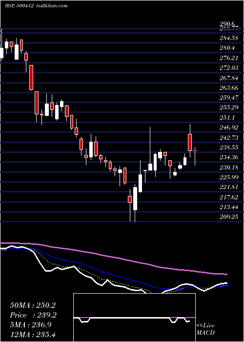 | Date | Closing | Open | Range | Volume | Fri 26 December 2025 | 239.20 (0.04%) | 239.45 | 233.05 - 240.55 | 0.3147 times | Wed 24 December 2025 | 239.10 (1.18%) | 246.05 | 236.50 - 250.25 | 2.1407 times | Tue 23 December 2025 | 236.30 (1.46%) | 233.20 | 232.95 - 238.00 | 0.3812 times | Mon 22 December 2025 | 232.90 (1.24%) | 231.80 | 231.15 - 234.15 | 1.0879 times | Fri 19 December 2025 | 230.05 (-1.18%) | 228.85 | 228.35 - 231.70 | 0.3951 times | Thu 18 December 2025 | 232.80 (-1.81%) | 234.95 | 227.40 - 235.10 | 0.5565 times | Wed 17 December 2025 | 237.10 (-0.57%) | 238.55 | 233.00 - 238.55 | 0.8251 times | Tue 16 December 2025 | 238.45 (0.36%) | 236.00 | 234.95 - 239.70 | 0.8743 times | Mon 15 December 2025 | 237.60 (1.71%) | 231.00 | 228.25 - 238.05 | 0.5496 times | Fri 12 December 2025 | 233.60 (1.19%) | 230.90 | 230.90 - 249.05 | 2.8749 times | Thu 11 December 2025 | 230.85 (0.79%) | 230.75 | 225.75 - 231.00 | 0.4499 times |