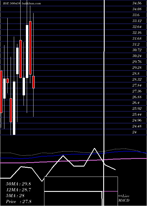 | Date | Closing | Open | Range | Volume | Tue 23 December 2025 | 26.50 (-5.05%) | 27.99 | 25.50 - 28.49 | 2.8505 times | Mon 22 December 2025 | 27.91 (-3.49%) | 28.90 | 27.90 - 29.89 | 1.1755 times | Fri 19 December 2025 | 28.92 (1.12%) | 28.60 | 28.60 - 29.95 | 0.0977 times | Thu 18 December 2025 | 28.60 (-2.72%) | 29.40 | 28.00 - 29.65 | 0.2177 times | Wed 17 December 2025 | 29.40 (-2%) | 31.00 | 29.40 - 31.00 | 0.0818 times | Tue 16 December 2025 | 30.00 (-0.1%) | 30.75 | 29.10 - 30.75 | 0.129 times | Mon 15 December 2025 | 30.03 (2%) | 31.75 | 27.75 - 32.38 | 3.1336 times | Fri 12 December 2025 | 29.44 (-2.19%) | 32.00 | 28.50 - 32.00 | 0.5661 times | Thu 11 December 2025 | 30.10 (4.91%) | 28.69 | 28.50 - 31.20 | 0.8984 times | Wed 10 December 2025 | 28.69 (-4.33%) | 30.13 | 28.07 - 30.94 | 0.8498 times | Tue 09 December 2025 | 29.99 (0%) | 30.01 | 29.99 - 31.49 | 0.5253 times |
