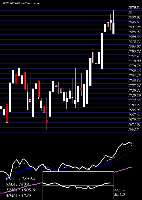 | Date | Closing | Open | Range | Volume | Fri 26 December 2025 | 1849.45 (-0.27%) | 1831.10 | 1831.10 - 1870.80 | 0.1156 times | Wed 24 December 2025 | 1854.40 (0.65%) | 1850.00 | 1837.30 - 1864.00 | 0.0956 times | Tue 23 December 2025 | 1842.40 (-0.22%) | 1849.95 | 1832.50 - 1849.95 | 0.0419 times | Mon 22 December 2025 | 1846.55 (0.78%) | 1833.60 | 1828.05 - 1852.60 | 0.1636 times | Fri 19 December 2025 | 1832.20 (1.87%) | 1770.70 | 1770.70 - 1837.55 | 0.2115 times | Thu 18 December 2025 | 1798.60 (1.05%) | 1779.80 | 1760.00 - 1805.00 | 0.0718 times | Wed 17 December 2025 | 1779.90 (-0.04%) | 1780.80 | 1770.00 - 1794.90 | 5.8407 times | Tue 16 December 2025 | 1780.65 (-0.45%) | 1799.45 | 1773.10 - 1799.45 | 0.0247 times | Mon 15 December 2025 | 1788.65 (1.11%) | 1741.30 | 1741.30 - 1798.65 | 1.3914 times | Fri 12 December 2025 | 1769.05 (1.44%) | 1711.05 | 1711.05 - 1775.00 | 2.0432 times | Thu 11 December 2025 | 1744.00 (0.55%) | 1706.15 | 1706.15 - 1750.00 | 0.0372 times |