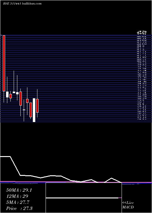 | Date | Closing | Open | Range | Volume | Wed 24 December 2025 | 27.30 (5%) | 26.20 | 26.20 - 27.30 | 0.2099 times | Tue 23 December 2025 | 26.00 (-4.97%) | 27.23 | 26.00 - 27.23 | 5.6072 times | Mon 22 December 2025 | 27.36 (-5%) | 28.66 | 27.36 - 28.66 | 3.5832 times | Fri 19 December 2025 | 28.80 (-2.21%) | 27.98 | 27.98 - 28.80 | 0.03 times | Thu 18 December 2025 | 29.45 (0%) | 29.45 | 29.45 - 29.45 | 0.075 times | Wed 17 December 2025 | 29.45 (-5%) | 30.85 | 29.45 - 30.85 | 0.1649 times | Tue 16 December 2025 | 31.00 (2.21%) | 31.00 | 31.00 - 31.00 | 0.03 times | Mon 15 December 2025 | 30.33 (-4.98%) | 30.33 | 30.33 - 30.33 | 0.045 times | Fri 12 December 2025 | 31.92 (5%) | 30.40 | 30.40 - 31.92 | 0.2399 times | Thu 11 December 2025 | 30.40 (-5%) | 30.40 | 30.40 - 30.40 | 0.015 times | Wed 10 December 2025 | 32.00 (0.57%) | 30.23 | 30.23 - 32.00 | 7.991 times |