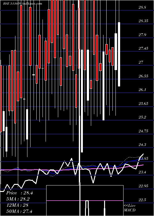 | Date | Closing | Open | Range | Volume | Wed 24 December 2025 | 28.40 (0.35%) | 28.45 | 26.38 - 29.00 | 1.4102 times | Tue 23 December 2025 | 28.30 (0.71%) | 31.20 | 26.30 - 31.20 | 0.8546 times | Mon 22 December 2025 | 28.10 (0.21%) | 26.31 | 26.31 - 28.95 | 1.1083 times | Fri 19 December 2025 | 28.04 (-2.03%) | 25.35 | 25.35 - 32.99 | 0.8086 times | Thu 18 December 2025 | 28.62 (0.81%) | 33.40 | 26.61 - 33.40 | 0.0815 times | Wed 17 December 2025 | 28.39 (0.32%) | 30.00 | 27.50 - 30.00 | 0.0606 times | Tue 16 December 2025 | 28.30 (3.97%) | 27.50 | 25.63 - 28.49 | 3.0588 times | Mon 15 December 2025 | 27.22 (0.85%) | 26.85 | 26.00 - 27.50 | 1.595 times | Fri 12 December 2025 | 26.99 (-0.77%) | 27.50 | 26.99 - 27.50 | 0.134 times | Thu 11 December 2025 | 27.20 (-0.4%) | 27.10 | 25.62 - 27.20 | 0.8885 times | Wed 10 December 2025 | 27.31 (0.26%) | 25.56 | 25.55 - 27.59 | 1.4209 times |
