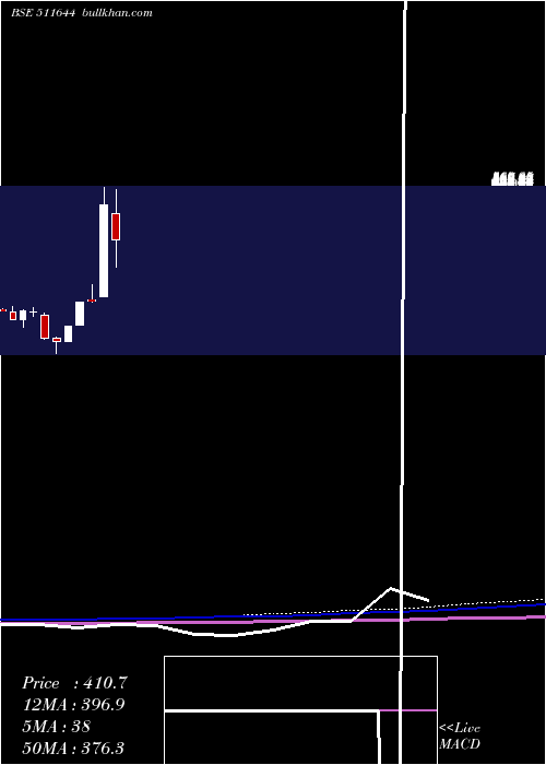 | Date | Closing | Open | Range | Volume | Fri 02 January 2026 | 452.70 (5%) | 448.00 | 444.10 - 452.70 | 0.5008 times | Thu 01 January 2026 | 431.15 (4.99%) | 431.15 | 431.15 - 431.15 | 0.3749 times | Wed 31 December 2025 | 410.65 (5%) | 410.65 | 410.65 - 410.65 | 0.058 times | Tue 30 December 2025 | 391.10 (4.99%) | 382.65 | 379.95 - 391.10 | 0.6925 times | Mon 29 December 2025 | 372.50 (4.99%) | 372.50 | 372.50 - 372.50 | 2.6959 times | Fri 26 December 2025 | 354.80 (4.99%) | 335.00 | 335.00 - 354.80 | 0.2846 times | Wed 24 December 2025 | 337.95 (-2.11%) | 345.00 | 328.00 - 345.00 | 2.2599 times | Tue 23 December 2025 | 345.25 (-4.48%) | 359.90 | 343.40 - 359.90 | 0.9607 times | Mon 22 December 2025 | 361.45 (-4.99%) | 380.45 | 361.45 - 380.45 | 1.1447 times | Fri 19 December 2025 | 380.45 (-4.99%) | 401.00 | 380.45 - 414.55 | 1.0282 times | Thu 18 December 2025 | 400.45 (-4.99%) | 417.25 | 400.45 - 417.25 | 0.6611 times |