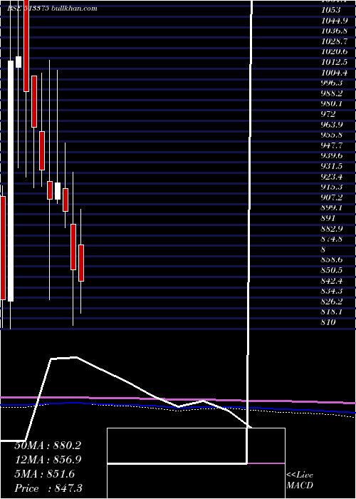 | Date | Closing | Open | Range | Volume | Fri 26 December 2025 | 850.25 (-0.69%) | 875.25 | 822.05 - 903.00 | 0.2493 times | Fri 28 November 2025 | 856.20 (-5.01%) | 891.60 | 812.95 - 931.75 | 1.1957 times | Fri 31 October 2025 | 901.35 (-2.4%) | 919.45 | 888.80 - 954.85 | 0.3974 times | Tue 30 September 2025 | 923.55 (1.41%) | 911.05 | 907.80 - 1011.25 | 0.5828 times | Fri 29 August 2025 | 910.70 (-2.49%) | 925.05 | 833.00 - 1018.85 | 1.4996 times | Thu 31 July 2025 | 933.95 (-3.39%) | 963.65 | 921.10 - 1009.20 | 0.587 times | Mon 30 June 2025 | 966.75 (-2.8%) | 1006.70 | 920.10 - 1006.70 | 3.6083 times | Fri 30 May 2025 | 994.60 (-2.68%) | 1069.95 | 927.85 - 1069.95 | 0.3744 times | Wed 30 April 2025 | 1021.95 (0.36%) | 1013.85 | 935.55 - 1079.00 | 0.4624 times | Fri 28 March 2025 | 1018.30 (22.29%) | 831.70 | 810.00 - 1127.00 | 1.043 times | Fri 28 February 2025 | 832.70 (-29.73%) | 1209.75 | 811.10 - 1217.15 | 0.6392 times |