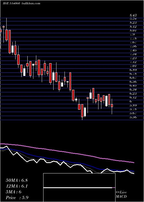 | Date | Closing | Open | Range | Volume | Wed 24 December 2025 | 5.92 (-1.17%) | 6.00 | 5.72 - 6.15 | 0.8013 times | Tue 23 December 2025 | 5.99 (-3.85%) | 6.28 | 5.92 - 6.28 | 1.8822 times | Mon 22 December 2025 | 6.23 (2.13%) | 5.95 | 5.93 - 6.24 | 0.7693 times | Fri 19 December 2025 | 6.10 (0.49%) | 6.25 | 6.03 - 6.25 | 0.4048 times | Thu 18 December 2025 | 6.07 (-0.49%) | 6.18 | 5.87 - 6.18 | 0.5763 times | Wed 17 December 2025 | 6.10 (0.66%) | 6.28 | 5.86 - 6.28 | 0.5045 times | Tue 16 December 2025 | 6.06 (-1.46%) | 6.14 | 6.02 - 6.14 | 0.287 times | Mon 15 December 2025 | 6.15 (-2.69%) | 6.45 | 6.04 - 6.45 | 0.8013 times | Fri 12 December 2025 | 6.32 (2.6%) | 6.16 | 6.16 - 6.41 | 0.5146 times | Thu 11 December 2025 | 6.16 (4.41%) | 6.19 | 5.75 - 6.19 | 3.4588 times | Wed 10 December 2025 | 5.90 (4.61%) | 5.66 | 5.64 - 5.92 | 1.7524 times |