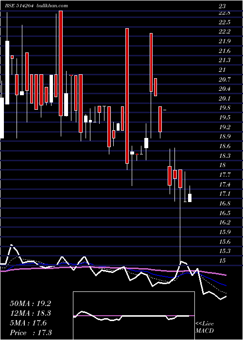 | Date | Closing | Open | Range | Volume | Wed 24 December 2025 | 17.00 (-2.52%) | 17.00 | 17.00 - 17.94 | 0.3656 times | Tue 23 December 2025 | 17.44 (-1.64%) | 18.00 | 15.00 - 18.00 | 2.7746 times | Mon 22 December 2025 | 17.73 (1.26%) | 17.99 | 17.01 - 18.70 | 0.6253 times | Fri 19 December 2025 | 17.51 (-11.92%) | 18.11 | 17.25 - 18.67 | 4.6539 times | Thu 18 December 2025 | 19.88 (3.54%) | 19.88 | 19.88 - 19.88 | 0.0034 times | Wed 17 December 2025 | 19.20 (-5.51%) | 19.99 | 19.00 - 19.99 | 0.6111 times | Tue 16 December 2025 | 20.32 (-0.73%) | 20.88 | 20.32 - 20.88 | 0.0562 times | Mon 15 December 2025 | 20.47 (7.74%) | 22.30 | 19.00 - 22.30 | 0.0114 times | Fri 12 December 2025 | 19.00 (2.7%) | 18.70 | 18.31 - 19.45 | 0.8639 times | Thu 11 December 2025 | 18.50 (0.05%) | 18.50 | 18.50 - 18.75 | 0.0345 times | Wed 10 December 2025 | 18.49 (-0.43%) | 18.50 | 18.29 - 18.50 | 0.0441 times |