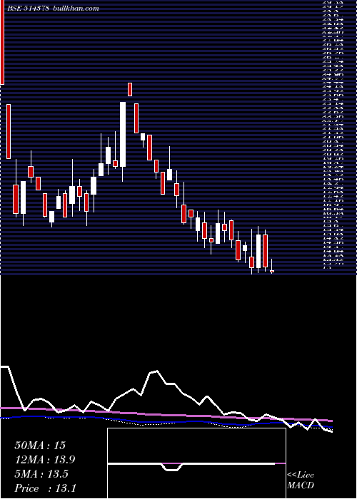 | Date | Closing | Open | Range | Volume | Fri 26 December 2025 | 13.13 (-3.88%) | 13.07 | 13.07 - 13.85 | 0.0893 times | Wed 24 December 2025 | 13.66 (0.22%) | 13.80 | 13.18 - 13.80 | 1.8476 times | Tue 23 December 2025 | 13.63 (3.02%) | 13.11 | 13.11 - 13.67 | 0.1684 times | Mon 22 December 2025 | 13.23 (-1.64%) | 13.21 | 13.06 - 13.95 | 2.6574 times | Fri 19 December 2025 | 13.45 (-2.96%) | 13.80 | 13.36 - 13.80 | 0.5628 times | Thu 18 December 2025 | 13.86 (-4.87%) | 14.28 | 13.20 - 15.10 | 2.5765 times | Wed 17 December 2025 | 14.57 (-3.7%) | 15.13 | 14.25 - 15.13 | 0.2035 times | Tue 16 December 2025 | 15.13 (2.44%) | 13.81 | 13.81 - 15.74 | 0.0919 times | Mon 15 December 2025 | 14.77 (-4.34%) | 15.44 | 14.56 - 15.44 | 0.9694 times | Fri 12 December 2025 | 15.44 (5.39%) | 14.85 | 14.25 - 15.94 | 0.8331 times | Thu 11 December 2025 | 14.65 (6.93%) | 13.74 | 13.70 - 14.78 | 0.9967 times |