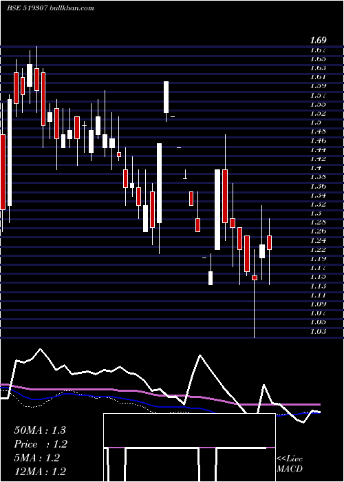 | Date | Closing | Open | Range | Volume | Fri 26 December 2025 | 1.23 (-0.81%) | 1.25 | 1.20 - 1.25 | 0.2112 times | Wed 24 December 2025 | 1.24 (-1.59%) | 1.26 | 1.21 - 1.30 | 0.3615 times | Tue 23 December 2025 | 1.26 (5%) | 1.23 | 1.15 - 1.26 | 1.1904 times | Mon 22 December 2025 | 1.20 (-3.23%) | 1.26 | 1.18 - 1.30 | 1.4732 times | Fri 19 December 2025 | 1.24 (4.2%) | 1.19 | 1.16 - 1.24 | 1.604 times | Thu 18 December 2025 | 1.19 (-4.8%) | 1.21 | 1.19 - 1.26 | 0.7849 times | Wed 17 December 2025 | 1.25 (-1.57%) | 1.33 | 1.23 - 1.33 | 2.4704 times | Tue 16 December 2025 | 1.27 (4.96%) | 1.27 | 1.27 - 1.27 | 0.958 times | Mon 15 December 2025 | 1.21 (4.31%) | 1.21 | 1.21 - 1.21 | 0.7163 times | Fri 12 December 2025 | 1.16 (4.5%) | 1.16 | 1.16 - 1.16 | 0.2301 times | Thu 11 December 2025 | 1.11 (4.72%) | 1.06 | 1.05 - 1.11 | 0.4596 times |