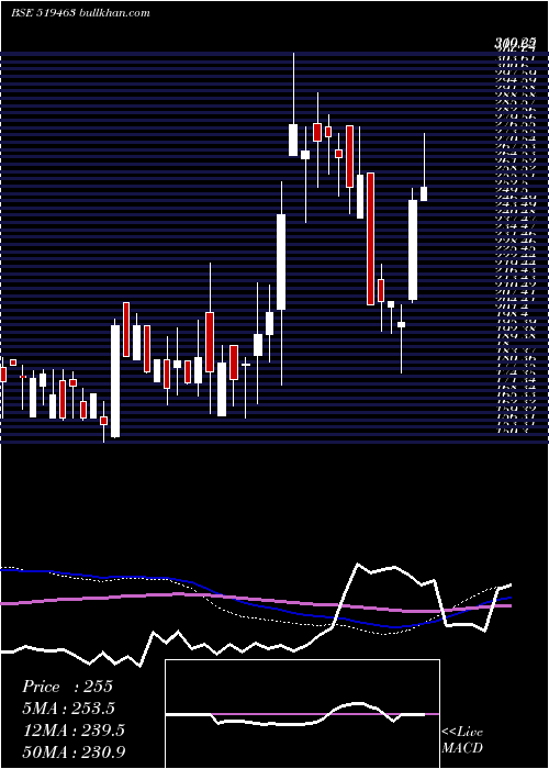 | Date | Closing | Open | Range | Volume | Wed 24 December 2025 | 260.65 (-1.27%) | 277.00 | 250.80 - 277.00 | 0.2587 times | Tue 23 December 2025 | 264.00 (2.4%) | 270.00 | 255.00 - 270.00 | 0.2093 times | Mon 22 December 2025 | 257.80 (3.26%) | 249.65 | 249.65 - 257.95 | 0.4215 times | Fri 19 December 2025 | 249.65 (2.93%) | 242.55 | 231.05 - 254.65 | 1.0698 times | Thu 18 December 2025 | 242.55 (5%) | 242.55 | 242.55 - 242.55 | 1.5988 times | Wed 17 December 2025 | 231.00 (5%) | 231.00 | 231.00 - 231.00 | 1.0494 times | Tue 16 December 2025 | 220.00 (4.99%) | 219.50 | 219.50 - 220.00 | 2.2151 times | Mon 15 December 2025 | 209.55 (4.98%) | 208.95 | 207.45 - 209.55 | 1.936 times | Fri 12 December 2025 | 199.60 (5%) | 191.05 | 187.90 - 199.60 | 1.0349 times | Thu 11 December 2025 | 190.10 (1.17%) | 187.90 | 178.60 - 190.10 | 0.2064 times | Wed 10 December 2025 | 187.90 (-3.94%) | 185.90 | 185.85 - 192.95 | 0.2151 times |
