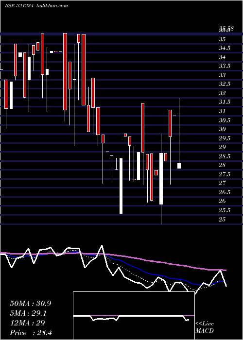 | Date | Closing | Open | Range | Volume | Fri 26 December 2025 | 28.36 (-8.52%) | 28.10 | 28.10 - 32.00 | 1.2678 times | Wed 24 December 2025 | 31.00 (3.89%) | 31.00 | 31.00 - 31.00 | 0.0032 times | Tue 23 December 2025 | 29.84 (4.74%) | 31.33 | 27.20 - 31.33 | 0.1167 times | Mon 22 December 2025 | 28.49 (-1.49%) | 28.92 | 28.45 - 28.92 | 1.0473 times | Fri 19 December 2025 | 28.92 (4.4%) | 26.10 | 25.00 - 29.99 | 5.5156 times | Thu 18 December 2025 | 27.70 (5.32%) | 27.99 | 27.70 - 27.99 | 0.3016 times | Wed 17 December 2025 | 26.30 (-6.07%) | 28.90 | 26.25 - 28.90 | 0.4994 times | Tue 16 December 2025 | 28.00 (-3.41%) | 28.88 | 26.20 - 28.88 | 0.5804 times | Mon 15 December 2025 | 28.99 (0.03%) | 31.70 | 27.16 - 31.70 | 0.441 times | Fri 12 December 2025 | 28.98 (5.57%) | 27.45 | 27.45 - 28.98 | 0.227 times | Thu 11 December 2025 | 27.45 (-6.47%) | 27.50 | 27.35 - 29.30 | 0.8431 times |