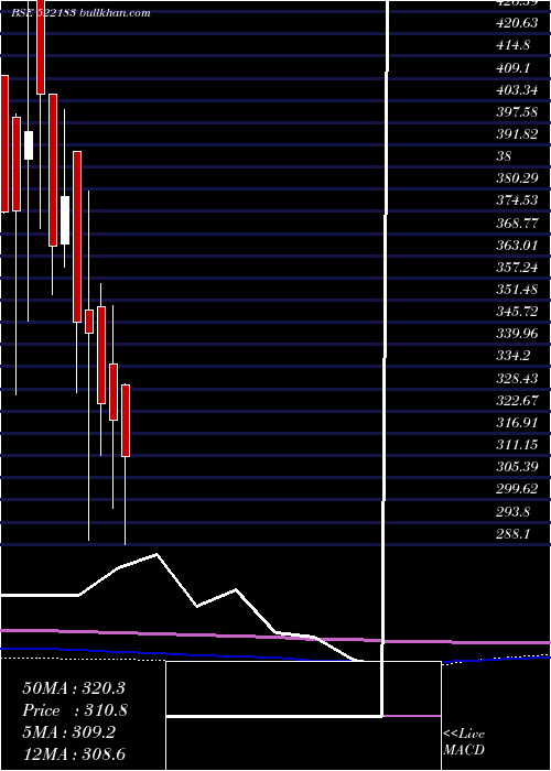 | Date | Closing | Open | Range | Volume | Wed 24 December 2025 | 310.75 (-2.95%) | 329.60 | 288.10 - 329.80 | 0.4619 times | Fri 28 November 2025 | 320.20 (-1.37%) | 334.90 | 297.50 - 350.00 | 0.6642 times | Fri 31 October 2025 | 324.65 (-5.29%) | 349.70 | 311.10 - 355.80 | 0.8389 times | Tue 30 September 2025 | 342.80 (-0.85%) | 349.00 | 289.20 - 379.90 | 1.0835 times | Fri 29 August 2025 | 345.75 (-8.6%) | 390.00 | 327.40 - 390.00 | 0.9356 times | Thu 31 July 2025 | 378.30 (3.47%) | 366.00 | 360.00 - 401.00 | 1.1736 times | Mon 30 June 2025 | 365.60 (-9.75%) | 405.00 | 352.90 - 405.00 | 1.7466 times | Fri 30 May 2025 | 405.10 (2.53%) | 430.00 | 370.00 - 430.00 | 0.6844 times | Wed 30 April 2025 | 395.10 (5.46%) | 388.00 | 346.10 - 455.00 | 1.5936 times | Fri 28 March 2025 | 374.65 (0.08%) | 398.90 | 327.00 - 399.90 | 0.8177 times | Fri 28 February 2025 | 374.35 (-9.78%) | 440.90 | 360.30 - 440.90 | 0.6485 times |