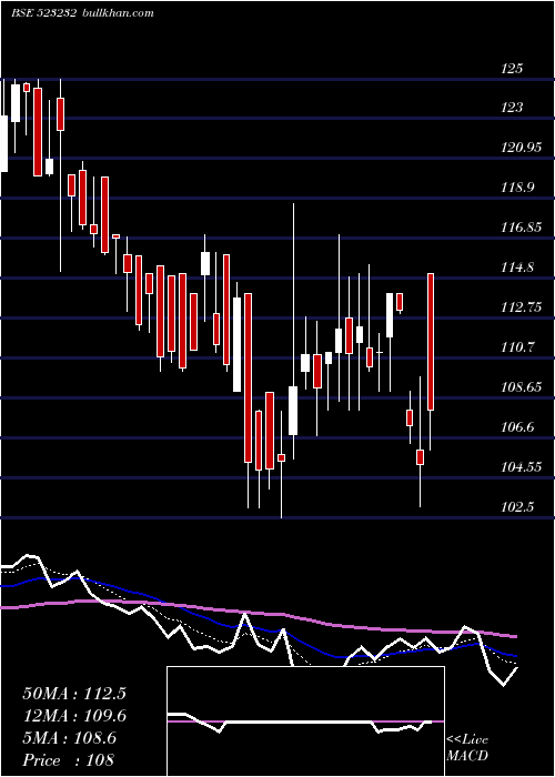 | Date | Closing | Open | Range | Volume | Tue 30 December 2025 | 108.00 (2.61%) | 115.00 | 106.00 - 115.00 | 1.0388 times | Mon 29 December 2025 | 105.25 (-1.86%) | 106.00 | 103.10 - 109.75 | 1.0461 times | Fri 26 December 2025 | 107.25 (-5.21%) | 108.00 | 106.30 - 109.00 | 1.3651 times | Wed 24 December 2025 | 113.15 (-0.75%) | 114.00 | 113.00 - 114.00 | 0.7797 times | Tue 23 December 2025 | 114.00 (2.7%) | 111.80 | 109.00 - 114.00 | 1.0938 times | Mon 22 December 2025 | 111.00 (0.68%) | 111.00 | 109.00 - 111.95 | 0.6348 times | Fri 19 December 2025 | 110.25 (-1.83%) | 111.20 | 110.00 - 115.50 | 0.9538 times | Thu 18 December 2025 | 112.30 (1.22%) | 111.50 | 108.00 - 115.00 | 0.7611 times | Wed 17 December 2025 | 110.95 (-1.11%) | 112.75 | 108.00 - 114.85 | 0.6939 times | Tue 16 December 2025 | 112.20 (1.08%) | 111.00 | 108.50 - 117.00 | 1.6331 times | Mon 15 December 2025 | 111.00 (1.69%) | 110.40 | 108.00 - 111.00 | 2.3156 times |