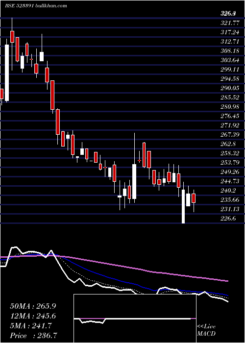 | Date | Closing | Open | Range | Volume | Fri 26 December 2025 | 242.85 (-5.43%) | 261.10 | 226.60 - 270.35 | 0.1721 times | Fri 28 November 2025 | 256.80 (-10.54%) | 286.20 | 256.10 - 326.40 | 0.2709 times | Fri 31 October 2025 | 287.05 (1.15%) | 280.05 | 280.05 - 339.95 | 0.3447 times | Tue 30 September 2025 | 283.80 (-3.72%) | 296.00 | 280.10 - 325.20 | 0.6258 times | Fri 29 August 2025 | 294.75 (-6.55%) | 331.15 | 277.10 - 347.70 | 1.2277 times | Thu 31 July 2025 | 315.40 (-11.55%) | 368.50 | 300.10 - 368.60 | 0.446 times | Mon 30 June 2025 | 356.60 (12.96%) | 324.95 | 324.95 - 388.00 | 1.1368 times | Fri 30 May 2025 | 315.70 (53.66%) | 215.00 | 193.00 - 367.65 | 4.8661 times | Wed 30 April 2025 | 205.45 (4.32%) | 204.00 | 198.05 - 226.60 | 0.2477 times | Fri 28 March 2025 | 196.95 (5.04%) | 175.00 | 175.00 - 220.85 | 0.6622 times | Fri 28 February 2025 | 187.50 (-16.72%) | 225.50 | 180.10 - 234.40 | 0.4919 times |