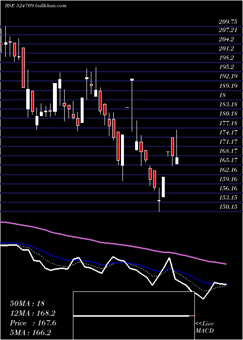 | Date | Closing | Open | Range | Volume | Fri 26 December 2025 | 167.60 (-0.33%) | 165.55 | 165.55 - 176.55 | 1.1445 times | Wed 24 December 2025 | 168.15 (-0.77%) | 174.00 | 165.00 - 174.00 | 0.895 times | Tue 23 December 2025 | 169.45 (4.99%) | 169.45 | 168.00 - 169.45 | 1.2726 times | Mon 22 December 2025 | 161.40 (4.98%) | 155.00 | 155.00 - 161.40 | 0.1542 times | Fri 19 December 2025 | 153.75 (-2.72%) | 153.65 | 150.15 - 157.95 | 1.8444 times | Thu 18 December 2025 | 158.05 (-1.53%) | 163.40 | 157.05 - 163.40 | 0.4412 times | Wed 17 December 2025 | 160.50 (-3.78%) | 164.20 | 158.50 - 164.90 | 0.8535 times | Tue 16 December 2025 | 166.80 (-1.53%) | 170.00 | 166.10 - 170.00 | 0.8114 times | Mon 15 December 2025 | 169.40 (-1.91%) | 172.50 | 165.00 - 174.80 | 0.9737 times | Fri 12 December 2025 | 172.70 (-10.45%) | 170.05 | 169.90 - 179.40 | 1.6095 times | Thu 11 December 2025 | 192.85 (4.95%) | 192.50 | 176.00 - 192.90 | 5.9889 times |
