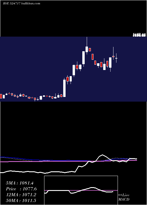 | Date | Closing | Open | Range | Volume | Fri 26 December 2025 | 1077.55 (-2.18%) | 1153.90 | 1056.80 - 1153.90 | 0.9077 times | Wed 24 December 2025 | 1101.55 (5%) | 1040.00 | 1020.00 - 1101.55 | 0.8441 times | Tue 23 December 2025 | 1049.10 (-0.71%) | 1078.90 | 1003.95 - 1078.95 | 1.0177 times | Mon 22 December 2025 | 1056.65 (-3.41%) | 1072.15 | 1050.00 - 1110.60 | 1.0092 times | Fri 19 December 2025 | 1094.00 (1.07%) | 1075.00 | 1052.10 - 1136.55 | 1.156 times | Thu 18 December 2025 | 1082.45 (-5%) | 1082.45 | 1082.45 - 1082.45 | 0.6251 times | Wed 17 December 2025 | 1139.40 (-5%) | 1248.70 | 1139.40 - 1259.30 | 2.2599 times | Tue 16 December 2025 | 1199.35 (5%) | 1174.00 | 1174.00 - 1199.35 | 0.6358 times | Mon 15 December 2025 | 1142.25 (5%) | 1110.00 | 1108.00 - 1142.25 | 0.719 times | Fri 12 December 2025 | 1087.90 (5%) | 1036.10 | 1036.10 - 1087.90 | 0.8254 times | Thu 11 December 2025 | 1036.10 (4.28%) | 1025.00 | 1000.00 - 1043.00 | 1.252 times |
