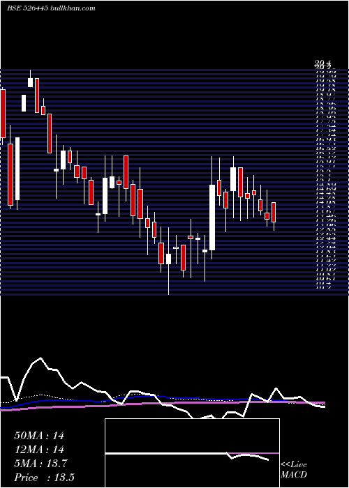 | Date | Closing | Open | Range | Volume | Mon 15 December 2025 | 13.49 (-0.81%) | 14.38 | 13.11 - 14.38 | 1.044 times | Fri 12 December 2025 | 13.60 (-3.61%) | 14.39 | 13.50 - 14.39 | 2.6178 times | Thu 11 December 2025 | 14.11 (1.22%) | 14.50 | 13.82 - 14.95 | 2.0704 times | Wed 10 December 2025 | 13.94 (1.38%) | 13.95 | 13.82 - 14.40 | 0.2362 times | Tue 09 December 2025 | 13.75 (0.88%) | 13.66 | 13.41 - 14.41 | 0.9992 times | Mon 08 December 2025 | 13.63 (-2.64%) | 13.90 | 13.30 - 14.74 | 0.4361 times | Fri 05 December 2025 | 14.00 (0%) | 14.00 | 13.91 - 14.38 | 0.2957 times | Thu 04 December 2025 | 14.00 (-2.51%) | 13.81 | 13.81 - 14.49 | 1.3219 times | Wed 03 December 2025 | 14.36 (1.06%) | 14.50 | 14.21 - 14.90 | 0.7081 times | Tue 02 December 2025 | 14.21 (-4.95%) | 14.91 | 14.12 - 14.95 | 0.2705 times | Mon 01 December 2025 | 14.95 (1.49%) | 14.51 | 14.51 - 15.15 | 0.7787 times |