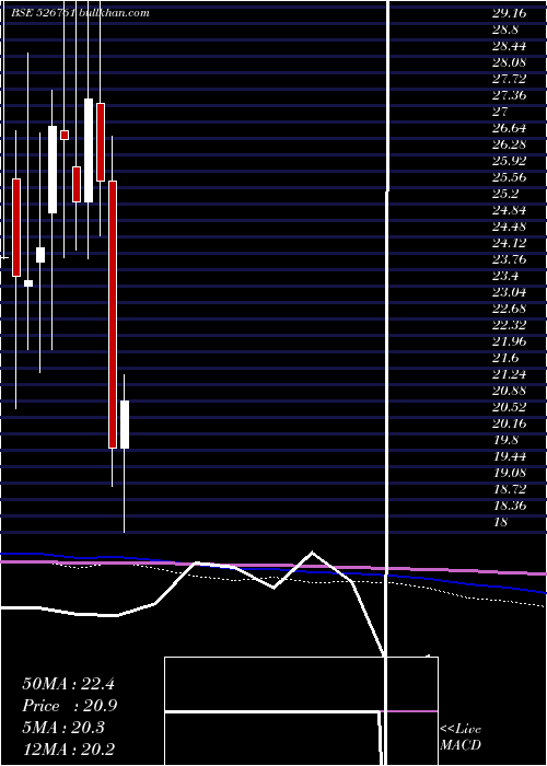 | Date | Closing | Open | Range | Volume | Wed 24 December 2025 | 20.87 (4.87%) | 19.90 | 19.90 - 20.87 | 0.4075 times | Tue 23 December 2025 | 19.90 (0.56%) | 19.80 | 19.80 - 20.88 | 1.4914 times | Mon 22 December 2025 | 19.79 (-7.74%) | 19.01 | 19.01 - 20.90 | 2.0141 times | Fri 19 December 2025 | 21.45 (10.23%) | 19.95 | 19.40 - 21.45 | 0.4558 times | Thu 18 December 2025 | 19.46 (-2.21%) | 19.90 | 18.00 - 19.90 | 1.8593 times | Fri 12 December 2025 | 19.90 (-0.05%) | 19.90 | 19.90 - 19.90 | 0.6193 times | Thu 11 December 2025 | 19.91 (-0.3%) | 20.46 | 18.75 - 20.50 | 0.8968 times | Wed 10 December 2025 | 19.97 (10.27%) | 18.25 | 18.25 - 20.97 | 1.3279 times | Tue 09 December 2025 | 18.11 (-7.13%) | 19.50 | 18.10 - 19.50 | 0.8411 times | Mon 08 December 2025 | 19.50 (1.3%) | 19.00 | 19.00 - 19.50 | 0.0867 times | Fri 05 December 2025 | 19.25 (-1.79%) | 19.50 | 18.50 - 19.50 | 0.8076 times |