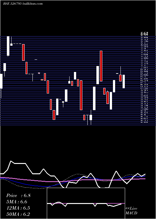 | Date | Closing | Open | Range | Volume | Thu 18 December 2025 | 6.80 (4.94%) | 6.80 | 6.80 - 6.80 | 0.2778 times | Tue 16 December 2025 | 6.48 (4.85%) | 6.47 | 6.47 - 6.48 | 0.5556 times | Mon 15 December 2025 | 6.18 (-4.92%) | 6.18 | 6.18 - 6.18 | 0.4167 times | Thu 11 December 2025 | 6.50 (-4.97%) | 6.50 | 6.50 - 6.50 | 2.6389 times | Wed 10 December 2025 | 6.84 (-5%) | 7.12 | 6.84 - 7.12 | 0.5556 times | Tue 09 December 2025 | 7.20 (4.8%) | 6.80 | 6.80 - 7.20 | 2.0833 times | Thu 04 December 2025 | 6.87 (4.89%) | 6.86 | 6.86 - 6.87 | 1.6667 times | Fri 28 November 2025 | 6.55 (4.3%) | 6.28 | 6.28 - 6.55 | 1.25 times | Wed 26 November 2025 | 6.28 (4.84%) | 6.28 | 6.28 - 6.28 | 0.1389 times | Tue 25 November 2025 | 5.99 (0%) | 5.99 | 5.99 - 5.99 | 0.4167 times | Fri 21 November 2025 | 5.99 (4.9%) | 5.99 | 5.99 - 5.99 | 0.5556 times |