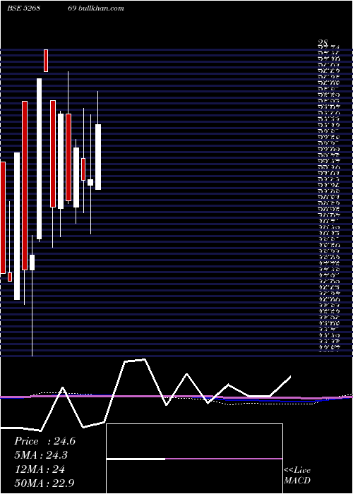 | Date | Closing | Open | Range | Volume | Fri 26 December 2025 | 24.55 (0.2%) | 24.99 | 24.50 - 24.99 | 0.3065 times | Wed 24 December 2025 | 24.50 (-0.2%) | 24.62 | 24.50 - 25.50 | 0.2367 times | Tue 23 December 2025 | 24.55 (1.95%) | 25.28 | 24.55 - 25.28 | 0.2081 times | Mon 22 December 2025 | 24.08 (0.46%) | 24.45 | 22.97 - 25.10 | 0.9594 times | Fri 19 December 2025 | 23.97 (0%) | 23.97 | 23.97 - 23.97 | 0.1464 times | Thu 18 December 2025 | 23.97 (4.95%) | 22.83 | 21.70 - 23.97 | 1.6832 times | Wed 17 December 2025 | 22.84 (-0.09%) | 22.97 | 21.72 - 22.97 | 0.1555 times | Tue 16 December 2025 | 22.86 (-4.71%) | 24.10 | 22.80 - 24.10 | 1.3791 times | Mon 15 December 2025 | 23.99 (-1.44%) | 25.55 | 23.13 - 25.55 | 4.8039 times | Fri 12 December 2025 | 24.34 (-3.76%) | 25.41 | 24.03 - 25.90 | 0.1212 times | Thu 11 December 2025 | 25.29 (1.69%) | 24.75 | 24.75 - 26.10 | 0.2687 times |