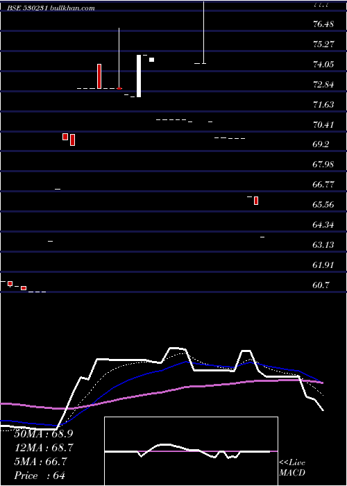 | Date | Closing | Open | Range | Volume | Mon 29 December 2025 | 64.00 (-3.03%) | 64.00 | 64.00 - 64.00 | 0.3311 times | Fri 26 December 2025 | 66.00 (-0.69%) | 66.46 | 66.00 - 66.46 | 1.4901 times | Wed 24 December 2025 | 66.46 (-4.99%) | 66.46 | 66.46 - 66.46 | 0.3311 times | Fri 19 December 2025 | 69.95 (0%) | 69.95 | 69.95 - 69.95 | 0.0331 times | Wed 10 December 2025 | 69.95 (0%) | 69.95 | 69.95 - 69.95 | 0.1656 times | Fri 05 December 2025 | 69.95 (-0.07%) | 69.95 | 69.95 - 69.95 | 0.1656 times | Thu 27 November 2025 | 70.00 (0%) | 70.00 | 70.00 - 70.00 | 6.6225 times | Tue 25 November 2025 | 70.00 (-1.41%) | 70.00 | 70.00 - 70.00 | 0.0331 times | Fri 14 November 2025 | 71.00 (-4.74%) | 71.00 | 71.00 - 71.00 | 0.4636 times | Wed 12 November 2025 | 74.53 (0%) | 74.53 | 74.53 - 78.25 | 0.3642 times | Tue 11 November 2025 | 74.53 (4.99%) | 74.53 | 74.53 - 74.53 | 53.1457 times |