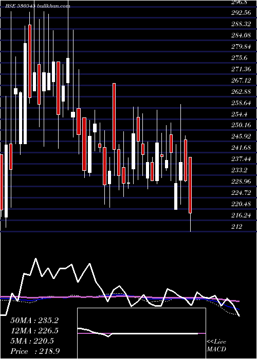| Date | Closing | Open | Range | Volume | Fri 12 December 2025 | 218.85 (0.9%) | 216.10 | 216.10 - 220.00 | 0.3571 times | Thu 11 December 2025 | 216.90 (1.59%) | 213.50 | 213.50 - 226.40 | 0.7943 times | Wed 10 December 2025 | 213.50 (-3.13%) | 220.60 | 212.00 - 228.95 | 1.322 times | Tue 09 December 2025 | 220.40 (-2.84%) | 225.00 | 218.00 - 225.00 | 1.1766 times | Mon 08 December 2025 | 226.85 (-1.86%) | 240.00 | 225.00 - 240.00 | 1.3506 times | Fri 05 December 2025 | 231.15 (-3.04%) | 231.60 | 231.00 - 231.60 | 3.7473 times | Thu 04 December 2025 | 238.40 (1.32%) | 248.15 | 230.70 - 248.15 | 0.546 times | Wed 03 December 2025 | 235.30 (-1.42%) | 244.65 | 232.55 - 244.65 | 0.1992 times | Tue 02 December 2025 | 238.70 (0.91%) | 244.30 | 233.20 - 244.30 | 0.0973 times | Mon 01 December 2025 | 236.55 (-0.65%) | 246.50 | 233.00 - 246.50 | 0.4098 times | Fri 28 November 2025 | 238.10 (-2.46%) | 248.00 | 235.30 - 248.85 | 0.7096 times |