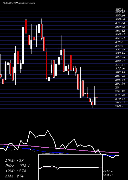 | Date | Closing | Open | Range | Volume | Wed 31 December 2025 | 273.25 (-2.58%) | 281.05 | 260.30 - 291.90 | 0.222 times | Fri 28 November 2025 | 280.50 (-9.59%) | 308.05 | 271.20 - 316.90 | 0.3325 times | Fri 31 October 2025 | 310.25 (-0.13%) | 315.00 | 305.90 - 334.40 | 0.5244 times | Tue 30 September 2025 | 310.65 (2.51%) | 305.80 | 304.45 - 360.80 | 0.9436 times | Fri 29 August 2025 | 303.05 (-11.51%) | 345.00 | 298.15 - 350.65 | 0.5247 times | Thu 31 July 2025 | 342.45 (-5.3%) | 361.60 | 337.40 - 384.00 | 1.3457 times | Mon 30 June 2025 | 361.60 (12.11%) | 322.00 | 318.70 - 393.20 | 2.4843 times | Fri 30 May 2025 | 322.55 (3.8%) | 308.00 | 288.80 - 346.05 | 1.9572 times | Wed 30 April 2025 | 310.75 (1.74%) | 307.50 | 281.40 - 348.35 | 0.6855 times | Fri 28 March 2025 | 305.45 (-7.89%) | 326.75 | 303.35 - 365.00 | 0.98 times | Fri 28 February 2025 | 331.60 (-32.28%) | 524.75 | 331.00 - 529.50 | 0.9278 times |