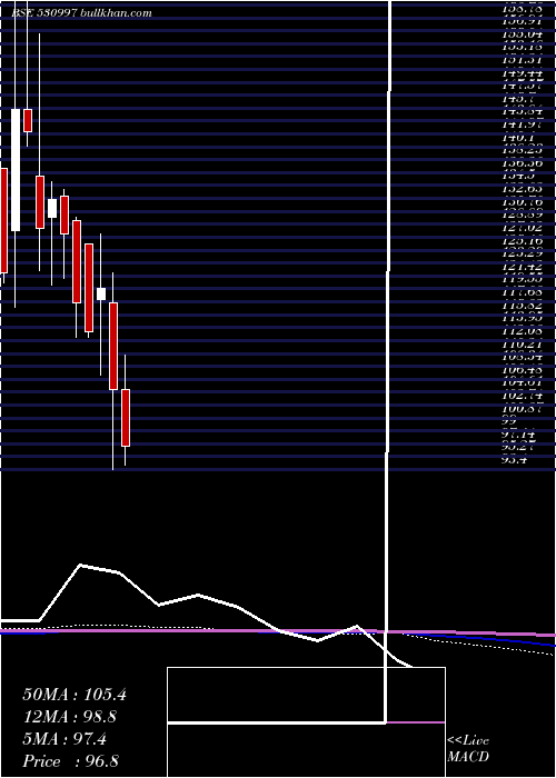 | Date | Closing | Open | Range | Volume | Fri 26 December 2025 | 96.75 (1.15%) | 95.60 | 94.00 - 104.95 | 3.2568 times | Wed 24 December 2025 | 95.65 (-1.75%) | 95.45 | 95.45 - 101.95 | 0.9476 times | Tue 23 December 2025 | 97.35 (-2.16%) | 99.50 | 97.10 - 102.00 | 0.3048 times | Mon 22 December 2025 | 99.50 (-0.3%) | 99.70 | 97.60 - 99.80 | 0.7975 times | Fri 19 December 2025 | 99.80 (-0.05%) | 99.85 | 96.00 - 101.90 | 0.4697 times | Thu 18 December 2025 | 99.85 (3.42%) | 96.75 | 96.10 - 101.80 | 0.0454 times | Wed 17 December 2025 | 96.55 (-3.74%) | 100.55 | 95.05 - 102.60 | 1.8803 times | Tue 16 December 2025 | 100.30 (-0.3%) | 98.00 | 98.00 - 109.95 | 0.7745 times | Mon 15 December 2025 | 100.60 (-1.66%) | 102.25 | 100.45 - 104.80 | 0.9639 times | Fri 12 December 2025 | 102.30 (1.19%) | 102.85 | 101.00 - 104.75 | 0.5596 times | Thu 11 December 2025 | 101.10 (1.86%) | 98.00 | 98.00 - 102.90 | 1.1594 times |