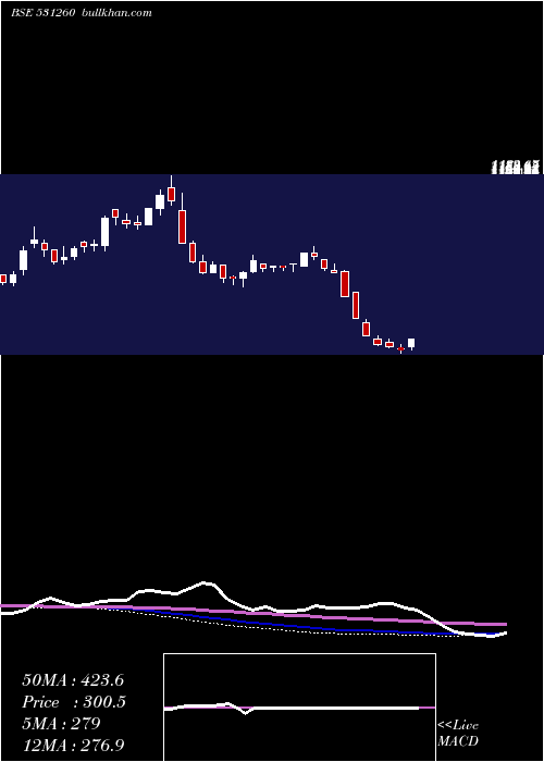 | Date | Closing | Open | Range | Volume | Fri 26 December 2025 | 300.45 (5%) | 300.45 | 300.45 - 300.45 | 0.2364 times | Wed 24 December 2025 | 286.15 (4.99%) | 286.00 | 286.00 - 286.15 | 0.4737 times | Tue 23 December 2025 | 272.55 (4.99%) | 272.55 | 272.00 - 272.55 | 0.3106 times | Mon 22 December 2025 | 259.60 (4.99%) | 259.00 | 243.50 - 259.60 | 0.5318 times | Fri 19 December 2025 | 247.25 (0.1%) | 248.00 | 236.40 - 249.90 | 0.2312 times | Thu 18 December 2025 | 247.00 (1.83%) | 249.35 | 232.50 - 249.35 | 0.4939 times | Wed 17 December 2025 | 242.55 (2.1%) | 225.70 | 225.70 - 244.80 | 3.4489 times | Tue 16 December 2025 | 237.55 (-5%) | 237.55 | 237.55 - 237.55 | 0.3455 times | Mon 15 December 2025 | 250.05 (-5%) | 250.05 | 250.05 - 271.85 | 2.842 times | Fri 12 December 2025 | 263.20 (-5%) | 269.05 | 263.20 - 275.25 | 1.0861 times | Thu 11 December 2025 | 277.05 (-4.99%) | 300.00 | 277.05 - 300.00 | 0.8729 times |