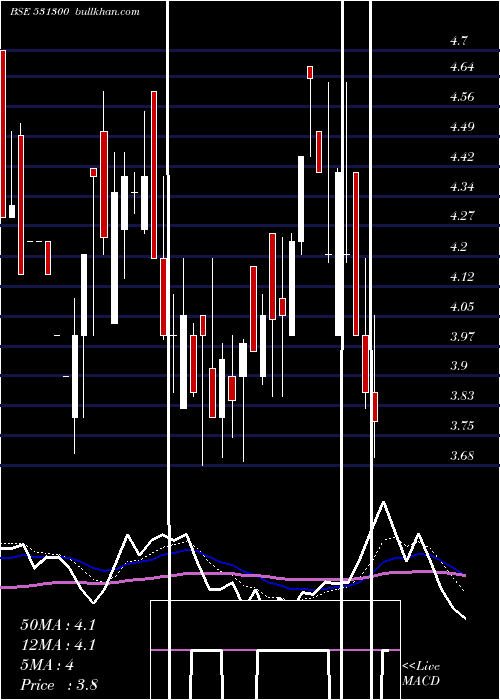 | Date | Closing | Open | Range | Volume | Fri 26 December 2025 | 3.79 (-1.81%) | 3.86 | 3.70 - 4.05 | 0.6539 times | Wed 24 December 2025 | 3.86 (-3.5%) | 4.00 | 3.82 - 4.19 | 1.1983 times | Tue 23 December 2025 | 4.00 (-4.76%) | 4.40 | 4.00 - 4.40 | 1.7321 times | Mon 22 December 2025 | 4.20 (-4.55%) | 4.20 | 4.18 - 4.62 | 1.451 times | Fri 19 December 2025 | 4.40 (4.76%) | 4.00 | 4.00 - 4.41 | 0.6336 times | Thu 18 December 2025 | 4.20 (-4.55%) | 4.20 | 4.18 - 4.62 | 2.4089 times | Wed 17 December 2025 | 4.40 (-4.97%) | 4.50 | 4.40 - 4.50 | 0.6045 times | Tue 16 December 2025 | 4.63 (4.28%) | 4.66 | 4.44 - 4.66 | 0.51 times | Mon 15 December 2025 | 4.44 (4.96%) | 4.23 | 4.20 - 4.44 | 0.074 times | Fri 12 December 2025 | 4.23 (4.44%) | 4.00 | 4.00 - 4.25 | 0.7337 times | Thu 11 December 2025 | 4.05 (0.25%) | 4.09 | 3.85 - 4.24 | 4.5999 times |
