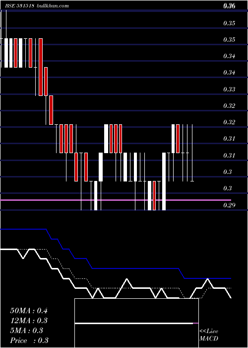 | Date | Closing | Open | Range | Volume | Fri 26 December 2025 | 0.30 (-3.23%) | 0.30 | 0.30 - 0.32 | 1.3762 times | Wed 24 December 2025 | 0.31 (0%) | 0.31 | 0.30 - 0.32 | 0.6727 times | Tue 23 December 2025 | 0.31 (0%) | 0.31 | 0.30 - 0.32 | 0.7652 times | Mon 22 December 2025 | 0.31 (-3.13%) | 0.32 | 0.31 - 0.32 | 1.1361 times | Fri 19 December 2025 | 0.32 (3.23%) | 0.31 | 0.30 - 0.32 | 0.3308 times | Thu 18 December 2025 | 0.31 (0%) | 0.31 | 0.30 - 0.31 | 0.7137 times | Wed 17 December 2025 | 0.31 (3.33%) | 0.29 | 0.29 - 0.31 | 0.8301 times | Tue 16 December 2025 | 0.30 (3.45%) | 0.30 | 0.29 - 0.30 | 2.1207 times | Mon 15 December 2025 | 0.29 (-3.33%) | 0.30 | 0.29 - 0.30 | 1.0766 times | Fri 12 December 2025 | 0.30 (0%) | 0.29 | 0.29 - 0.30 | 0.978 times | Thu 11 December 2025 | 0.30 (0%) | 0.30 | 0.29 - 0.31 | 0.6608 times |