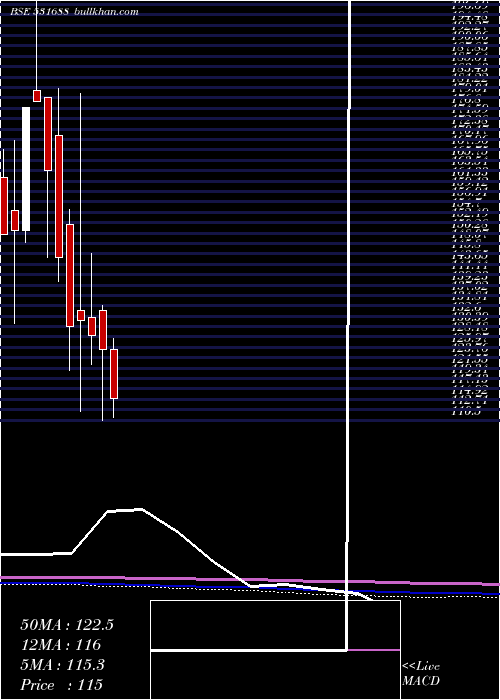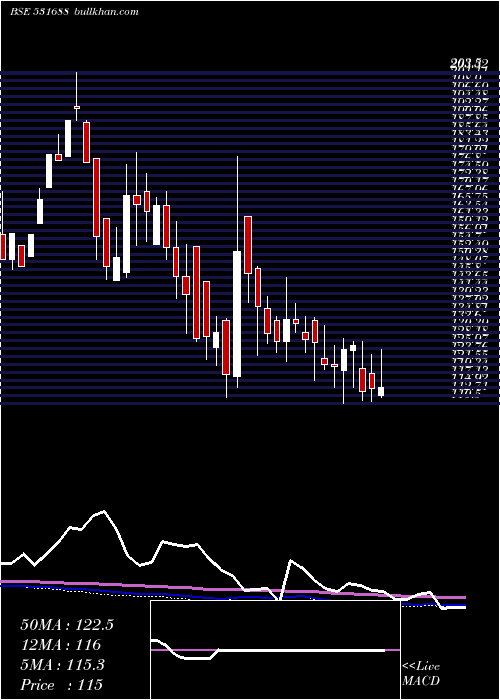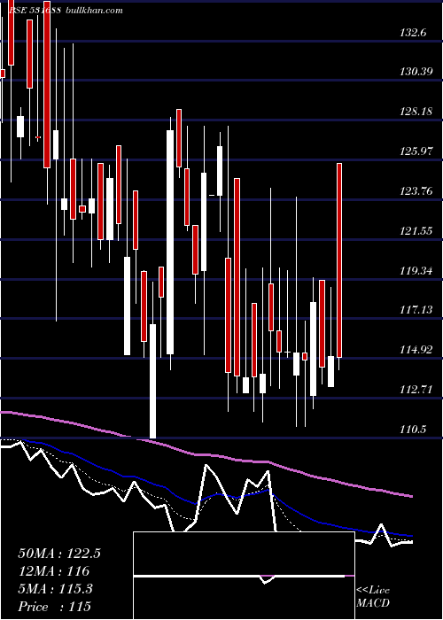 | Date | Closing | Open | Range | Volume | Fri 26 December 2025 | 115.00 (-0.04%) | 125.80 | 114.30 - 125.80 | 0.3521 times | Wed 24 December 2025 | 115.05 (0.52%) | 113.35 | 113.35 - 118.90 | 0.6707 times | Tue 23 December 2025 | 114.45 (-3.05%) | 119.25 | 113.50 - 119.25 | 1.3969 times | Mon 22 December 2025 | 118.05 (2.79%) | 112.85 | 112.15 - 119.40 | 2.124 times | Fri 19 December 2025 | 114.85 (-0.35%) | 115.25 | 111.15 - 117.00 | 0.3129 times | Thu 18 December 2025 | 115.25 (-0.04%) | 114.00 | 111.15 - 123.90 | 2.5746 times | Wed 17 December 2025 | 115.30 (0%) | 115.30 | 115.00 - 119.80 | 0.641 times | Tue 16 December 2025 | 115.30 (-0.99%) | 116.45 | 113.25 - 119.95 | 0.0536 times | Mon 15 December 2025 | 116.45 (2.1%) | 119.10 | 113.40 - 124.40 | 0.708 times | Fri 12 December 2025 | 114.05 (0.13%) | 113.00 | 111.40 - 119.95 | 1.1663 times | Thu 11 December 2025 | 113.90 (0.04%) | 118.00 | 112.00 - 118.00 | 0.7845 times |
