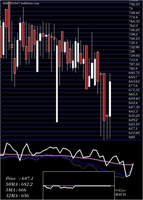 | Date | Closing | Open | Range | Volume | Fri 02 January 2026 | 687.10 (0.32%) | 698.95 | 658.00 - 698.95 | 0.5447 times | Thu 01 January 2026 | 684.90 (2.28%) | 669.65 | 667.00 - 687.95 | 0.9148 times | Wed 31 December 2025 | 669.65 (8.75%) | 629.90 | 621.50 - 679.90 | 0.9358 times | Tue 30 December 2025 | 615.75 (-2.26%) | 630.00 | 610.10 - 630.00 | 0.4888 times | Mon 29 December 2025 | 630.00 (-1.25%) | 638.00 | 607.15 - 638.00 | 0.2235 times | Fri 26 December 2025 | 638.00 (3.29%) | 624.10 | 624.10 - 638.00 | 1.8925 times | Wed 24 December 2025 | 617.70 (-2.03%) | 606.00 | 605.90 - 629.90 | 1.2011 times | Tue 23 December 2025 | 630.50 (-0.07%) | 630.50 | 630.50 - 630.50 | 0.1047 times | Mon 22 December 2025 | 630.95 (-0.24%) | 640.00 | 612.00 - 640.00 | 1.9064 times | Fri 19 December 2025 | 632.45 (2.16%) | 632.10 | 631.00 - 639.00 | 1.7877 times | Thu 18 December 2025 | 619.05 (-2.16%) | 630.00 | 605.00 - 649.50 | 2.3394 times |
