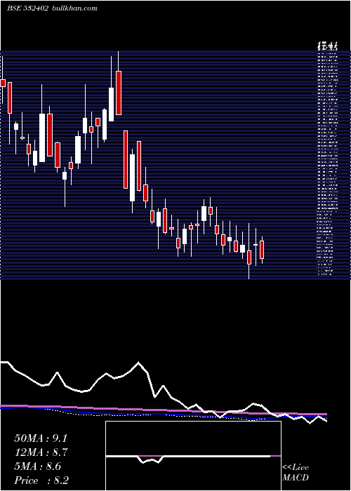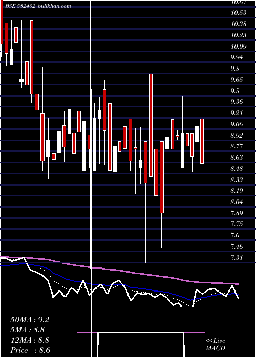 | Date | Closing | Open | Range | Volume | Wed 24 December 2025 | 8.61 (-5.38%) | 9.20 | 8.12 - 9.20 | 1.1288 times | Tue 23 December 2025 | 9.10 (4.6%) | 8.90 | 8.72 - 9.10 | 0.2999 times | Mon 22 December 2025 | 8.70 (-1.58%) | 9.00 | 8.50 - 9.00 | 0.212 times | Fri 19 December 2025 | 8.84 (-1.78%) | 9.00 | 8.70 - 9.00 | 0.2355 times | Thu 18 December 2025 | 9.00 (0.45%) | 8.55 | 8.55 - 9.49 | 0.4259 times | Wed 17 December 2025 | 8.96 (1.82%) | 8.98 | 8.92 - 9.05 | 0.6993 times | Tue 16 December 2025 | 8.80 (-1.79%) | 9.19 | 8.75 - 9.25 | 0.4005 times | Mon 15 December 2025 | 8.96 (12.56%) | 8.80 | 7.92 - 9.55 | 2.3988 times | Fri 12 December 2025 | 7.96 (-2.81%) | 8.90 | 7.50 - 8.90 | 2.9057 times | Thu 11 December 2025 | 8.19 (-2.96%) | 8.80 | 7.55 - 8.85 | 1.2936 times | Wed 10 December 2025 | 8.44 (0.96%) | 9.79 | 7.67 - 9.79 | 0.8589 times |