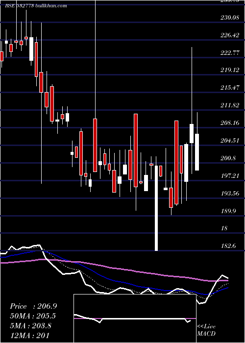 | Date | Closing | Open | Range | Volume | Wed 24 December 2025 | 208.85 (2.03%) | 205.00 | 198.65 - 224.90 | 3.0673 times | Tue 23 December 2025 | 204.70 (2.99%) | 197.00 | 193.00 - 205.00 | 0.7017 times | Mon 22 December 2025 | 198.75 (3.38%) | 204.45 | 192.40 - 204.45 | 0.0483 times | Fri 19 December 2025 | 192.25 (0.37%) | 209.65 | 192.05 - 209.65 | 0.8072 times | Thu 18 December 2025 | 191.55 (-2.1%) | 195.65 | 190.10 - 199.00 | 1.8823 times | Wed 17 December 2025 | 195.65 (-1.24%) | 195.25 | 195.25 - 203.90 | 1.7137 times | Tue 16 December 2025 | 198.10 (-1.05%) | 200.20 | 198.00 - 200.20 | 0.0473 times | Mon 15 December 2025 | 200.20 (-0.07%) | 182.60 | 182.60 - 202.15 | 0.0292 times | Fri 12 December 2025 | 200.35 (1.01%) | 200.65 | 197.50 - 202.15 | 1.1059 times | Thu 11 December 2025 | 198.35 (0.84%) | 195.05 | 195.05 - 201.20 | 0.5971 times | Wed 10 December 2025 | 196.70 (0.41%) | 197.00 | 196.45 - 203.00 | 0.1471 times |
