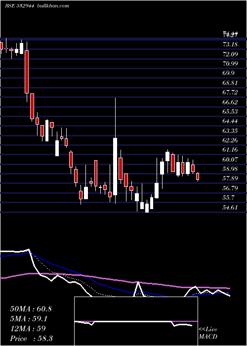 | Date | Closing | Open | Range | Volume | Wed 24 December 2025 | 59.19 (-1.82%) | 60.00 | 58.98 - 60.54 | 0.5115 times | Tue 23 December 2025 | 60.29 (2.12%) | 58.99 | 58.75 - 60.75 | 0.7982 times | Mon 22 December 2025 | 59.04 (-2.06%) | 60.30 | 58.70 - 61.04 | 0.4021 times | Fri 19 December 2025 | 60.28 (1.79%) | 58.80 | 58.64 - 61.12 | 0.5837 times | Thu 18 December 2025 | 59.22 (-3.66%) | 61.20 | 59.19 - 61.34 | 0.8201 times | Wed 17 December 2025 | 61.47 (1.82%) | 60.45 | 59.11 - 61.75 | 1.3413 times | Tue 16 December 2025 | 60.37 (4.23%) | 58.94 | 57.30 - 60.75 | 2.3458 times | Mon 15 December 2025 | 57.92 (2.95%) | 56.20 | 56.19 - 60.81 | 2.7852 times | Fri 12 December 2025 | 56.26 (1.33%) | 54.96 | 54.96 - 56.60 | 0.1838 times | Thu 11 December 2025 | 55.52 (-0.36%) | 54.61 | 54.61 - 55.99 | 0.2283 times | Wed 10 December 2025 | 55.72 (-1.75%) | 55.01 | 55.01 - 57.83 | 0.49 times |