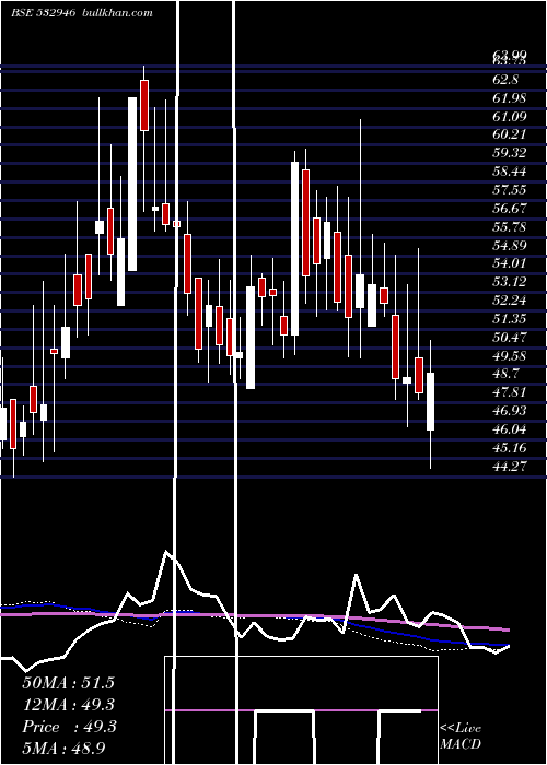 | Date | Closing | Open | Range | Volume | Fri 26 December 2025 | 48.28 (-1.97%) | 50.99 | 48.00 - 50.99 | 0.0303 times | Wed 24 December 2025 | 49.25 (0.24%) | 50.44 | 49.12 - 50.89 | 0.0894 times | Tue 23 December 2025 | 49.13 (0.35%) | 49.49 | 48.00 - 55.23 | 8.4389 times | Mon 22 December 2025 | 48.96 (-0.12%) | 50.00 | 48.40 - 50.00 | 0.003 times | Fri 19 December 2025 | 49.02 (3.97%) | 48.30 | 47.47 - 49.02 | 0.0087 times | Thu 18 December 2025 | 47.15 (-3.78%) | 51.90 | 46.66 - 51.90 | 0.4011 times | Wed 17 December 2025 | 49.00 (0.62%) | 49.94 | 48.35 - 49.94 | 0.1502 times | Tue 16 December 2025 | 48.70 (-1.62%) | 49.50 | 47.20 - 53.50 | 0.652 times | Mon 15 December 2025 | 49.50 (1.02%) | 48.75 | 48.63 - 49.52 | 0.0043 times | Fri 12 December 2025 | 49.00 (-0.95%) | 50.35 | 48.00 - 50.43 | 0.2221 times | Thu 11 December 2025 | 49.47 (0.43%) | 50.00 | 48.33 - 51.50 | 0.2352 times |