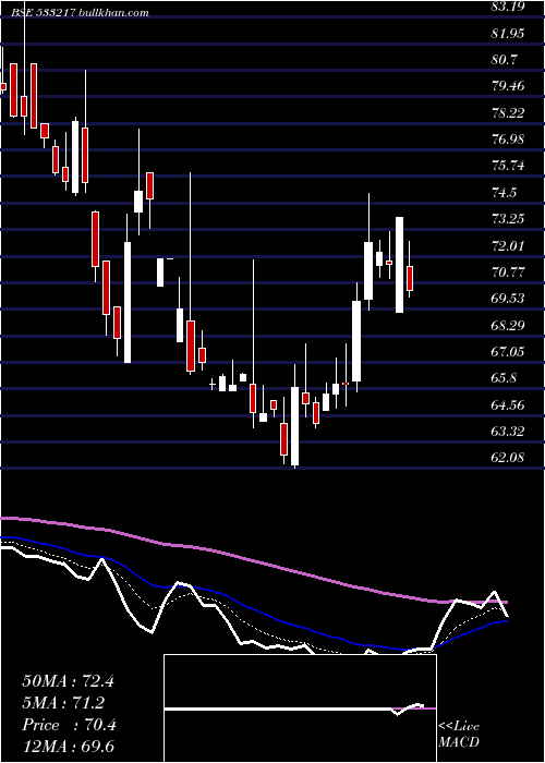 | Date | Closing | Open | Range | Volume | Wed 24 December 2025 | 70.41 (-4.59%) | 71.55 | 70.10 - 72.71 | 0.4637 times | Tue 23 December 2025 | 73.80 (3%) | 69.40 | 69.40 - 73.82 | 0.0234 times | Mon 22 December 2025 | 71.65 (-0.76%) | 71.77 | 70.98 - 73.14 | 0.3771 times | Fri 19 December 2025 | 72.20 (-0.62%) | 71.59 | 71.03 - 72.75 | 0.3111 times | Thu 18 December 2025 | 72.65 (3.96%) | 70.00 | 69.50 - 74.95 | 4.2223 times | Wed 17 December 2025 | 69.88 (5.83%) | 66.20 | 65.67 - 70.78 | 3.6592 times | Tue 16 December 2025 | 66.03 (0%) | 66.10 | 65.00 - 67.90 | 0.2889 times | Mon 15 December 2025 | 66.03 (0.72%) | 65.56 | 64.92 - 67.26 | 0.2298 times | Fri 12 December 2025 | 65.56 (2.15%) | 64.81 | 64.81 - 66.10 | 0.0505 times | Thu 11 December 2025 | 64.18 (-1.41%) | 65.15 | 64.00 - 65.41 | 0.3741 times | Wed 10 December 2025 | 65.10 (-1.15%) | 65.60 | 64.48 - 67.93 | 1.8307 times |