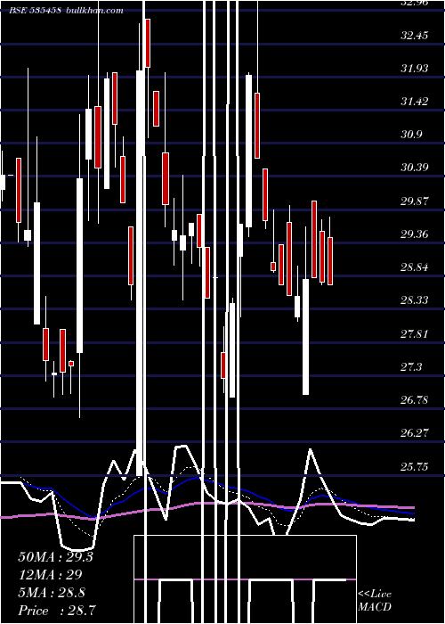 | Date | Closing | Open | Range | Volume | Fri 26 December 2025 | 28.71 (-0.1%) | 29.43 | 28.71 - 29.75 | 0.1865 times | Wed 24 December 2025 | 28.74 (-0.24%) | 29.53 | 28.70 - 29.71 | 0.9998 times | Tue 23 December 2025 | 28.81 (0.07%) | 30.00 | 28.81 - 30.00 | 0.3188 times | Mon 22 December 2025 | 28.79 (0.95%) | 27.00 | 27.00 - 29.60 | 1.2058 times | Fri 19 December 2025 | 28.52 (-0.07%) | 28.21 | 28.14 - 29.00 | 0.9998 times | Thu 18 December 2025 | 28.54 (-0.59%) | 29.67 | 28.54 - 29.94 | 1.8543 times | Wed 17 December 2025 | 28.71 (-0.76%) | 29.33 | 28.71 - 29.33 | 0.18 times | Tue 16 December 2025 | 28.93 (-2.59%) | 29.05 | 28.90 - 29.87 | 1.3967 times | Mon 15 December 2025 | 29.70 (-3.16%) | 30.50 | 29.58 - 30.50 | 0.6831 times | Fri 12 December 2025 | 30.67 (-4.01%) | 31.68 | 30.67 - 36.50 | 2.1752 times | Thu 11 December 2025 | 31.95 (7.76%) | 29.60 | 29.45 - 32.00 | 18.4407 times |