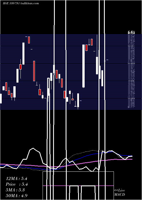 | Date | Closing | Open | Range | Volume | Tue 30 December 2025 | 5.35 (0%) | 5.35 | 5.35 - 5.35 | 0.6667 times | Mon 29 December 2025 | 5.35 (0.94%) | 5.35 | 5.35 - 5.35 | 0.6667 times | Mon 22 December 2025 | 5.30 (9.73%) | 5.30 | 5.30 - 5.30 | 0.6667 times | Fri 12 December 2025 | 4.83 (19.55%) | 4.83 | 4.83 - 4.83 | 0.6667 times | Mon 24 November 2025 | 4.04 (-20%) | 4.04 | 4.04 - 4.04 | 0.6667 times | Wed 12 November 2025 | 5.05 (-19.84%) | 5.05 | 5.05 - 5.05 | 0.6667 times | Tue 14 October 2025 | 6.30 (-1.1%) | 6.30 | 6.30 - 6.30 | 0.6667 times | Mon 13 October 2025 | 6.37 (15.82%) | 4.41 | 4.41 - 6.37 | 1.3333 times | Fri 10 October 2025 | 5.50 (-16.67%) | 5.28 | 5.28 - 5.50 | 1.3333 times | Thu 09 October 2025 | 6.60 (14.19%) | 4.64 | 4.63 - 6.60 | 2.6667 times | Thu 17 July 2025 | 5.78 (-4.93%) | 5.78 | 5.78 - 5.78 | 0.6667 times |