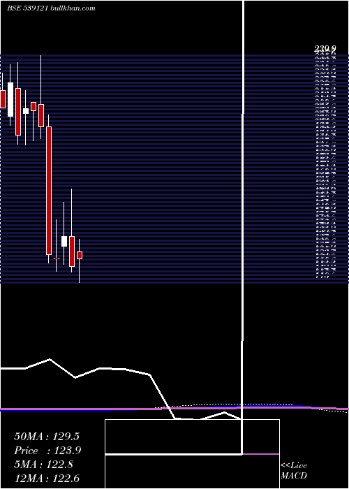 | Date | Closing | Open | Range | Volume | Fri 26 December 2025 | 123.85 (0.69%) | 122.00 | 120.00 - 127.80 | 0.9033 times | Wed 24 December 2025 | 123.00 (2.5%) | 128.55 | 123.00 - 128.55 | 0.3051 times | Tue 23 December 2025 | 120.00 (-2.44%) | 135.00 | 113.40 - 135.00 | 0.6503 times | Mon 22 December 2025 | 123.00 (-0.53%) | 123.55 | 123.00 - 123.65 | 1.658 times | Fri 19 December 2025 | 123.65 (4.66%) | 112.00 | 112.00 - 126.00 | 0.7627 times | Thu 18 December 2025 | 118.15 (-6.6%) | 129.95 | 118.00 - 129.95 | 2.0955 times | Wed 17 December 2025 | 126.50 (1.24%) | 114.20 | 114.20 - 129.95 | 0.6343 times | Tue 16 December 2025 | 124.95 (0.89%) | 131.95 | 124.95 - 131.95 | 0.9314 times | Mon 15 December 2025 | 123.85 (0.32%) | 128.00 | 122.00 - 128.00 | 1.1682 times | Fri 12 December 2025 | 123.45 (2.11%) | 124.50 | 123.00 - 124.50 | 0.8912 times | Thu 11 December 2025 | 120.90 (-0.04%) | 120.90 | 120.90 - 120.90 | 0.0923 times |