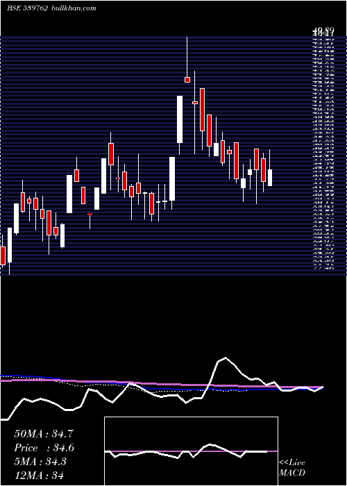 | Date | Closing | Open | Range | Volume | Wed 24 December 2025 | 34.28 (-0.9%) | 34.50 | 33.60 - 35.89 | 0.8121 times | Tue 23 December 2025 | 34.59 (1.53%) | 36.90 | 33.50 - 36.90 | 1.8115 times | Mon 22 December 2025 | 34.07 (2.53%) | 32.70 | 32.70 - 34.90 | 0.4328 times | Fri 19 December 2025 | 33.23 (-1.57%) | 33.76 | 32.83 - 35.50 | 0.5722 times | Thu 18 December 2025 | 33.76 (0.63%) | 33.39 | 32.00 - 35.50 | 1.833 times | Wed 17 December 2025 | 33.55 (-1.24%) | 35.14 | 33.37 - 35.14 | 0.2184 times | Tue 16 December 2025 | 33.97 (-0.59%) | 35.77 | 33.30 - 35.78 | 0.6529 times | Mon 15 December 2025 | 34.17 (-1.1%) | 35.88 | 33.85 - 36.50 | 0.8917 times | Fri 12 December 2025 | 34.55 (5.11%) | 34.00 | 32.36 - 34.95 | 2.2593 times | Thu 11 December 2025 | 32.87 (-2.92%) | 35.00 | 32.55 - 35.00 | 0.5162 times | Wed 10 December 2025 | 33.86 (1.83%) | 34.99 | 33.01 - 34.99 | 0.5246 times |