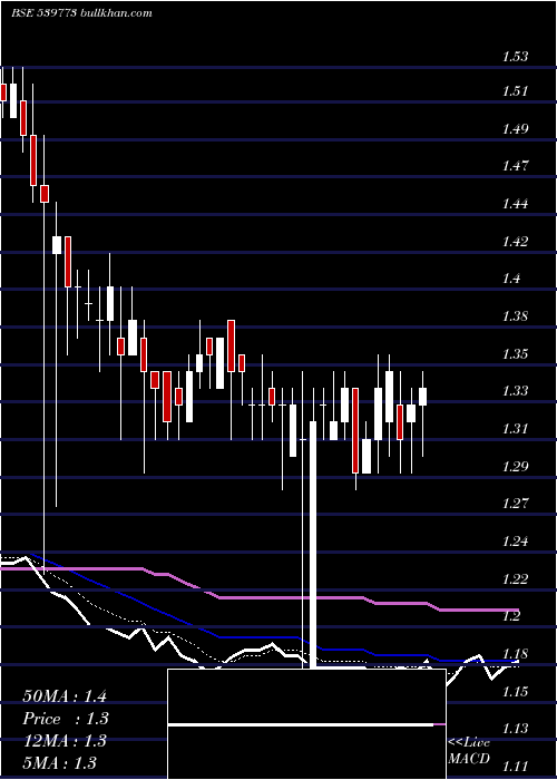 | Date | Closing | Open | Range | Volume | Mon 29 December 2025 | 1.34 (0.75%) | 1.33 | 1.30 - 1.35 | 0.8045 times | Fri 26 December 2025 | 1.33 (1.53%) | 1.32 | 1.29 - 1.34 | 3.4209 times | Wed 24 December 2025 | 1.31 (-2.96%) | 1.33 | 1.29 - 1.35 | 0.1458 times | Tue 23 December 2025 | 1.35 (0.75%) | 1.32 | 1.30 - 1.36 | 1.3429 times | Mon 22 December 2025 | 1.34 (2.29%) | 1.31 | 1.29 - 1.36 | 0.9759 times | Fri 19 December 2025 | 1.31 (1.55%) | 1.29 | 1.29 - 1.32 | 1.5615 times | Thu 18 December 2025 | 1.29 (-3.73%) | 1.34 | 1.28 - 1.34 | 0.1226 times | Wed 17 December 2025 | 1.34 (1.52%) | 1.32 | 1.31 - 1.35 | 1.4538 times | Tue 16 December 2025 | 1.32 (-0.75%) | 1.31 | 1.31 - 1.35 | 0.1266 times | Mon 15 December 2025 | 1.33 (0.76%) | 1.33 | 1.31 - 1.34 | 0.0455 times | Fri 12 December 2025 | 1.32 (0.76%) | 1.13 | 1.13 - 1.34 | 0.2145 times |