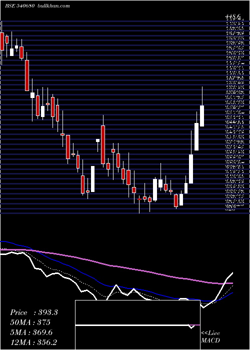 | Date | Closing | Open | Range | Volume | Wed 24 December 2025 | 381.80 (7.41%) | 356.00 | 323.00 - 389.35 | 0.1649 times | Fri 28 November 2025 | 355.45 (-17.45%) | 431.00 | 332.75 - 437.30 | 0.1116 times | Fri 31 October 2025 | 430.60 (0.97%) | 434.90 | 420.20 - 634.35 | 1.8182 times | Tue 30 September 2025 | 426.45 (4.53%) | 407.65 | 406.75 - 494.95 | 1.2252 times | Fri 29 August 2025 | 407.95 (28.27%) | 317.35 | 317.35 - 482.45 | 5.3477 times | Thu 31 July 2025 | 318.05 (6.19%) | 299.75 | 284.75 - 384.00 | 0.6887 times | Mon 30 June 2025 | 299.50 (-1.66%) | 300.45 | 280.05 - 334.95 | 0.189 times | Fri 30 May 2025 | 304.55 (20.38%) | 253.80 | 229.60 - 323.80 | 0.1763 times | Wed 30 April 2025 | 253.00 (7.23%) | 235.30 | 219.50 - 296.95 | 0.1849 times | Fri 28 March 2025 | 235.95 (1.7%) | 232.10 | 216.45 - 275.45 | 0.0934 times | Fri 28 February 2025 | 232.00 (-30.63%) | 331.90 | 227.40 - 331.90 | 0.0878 times |