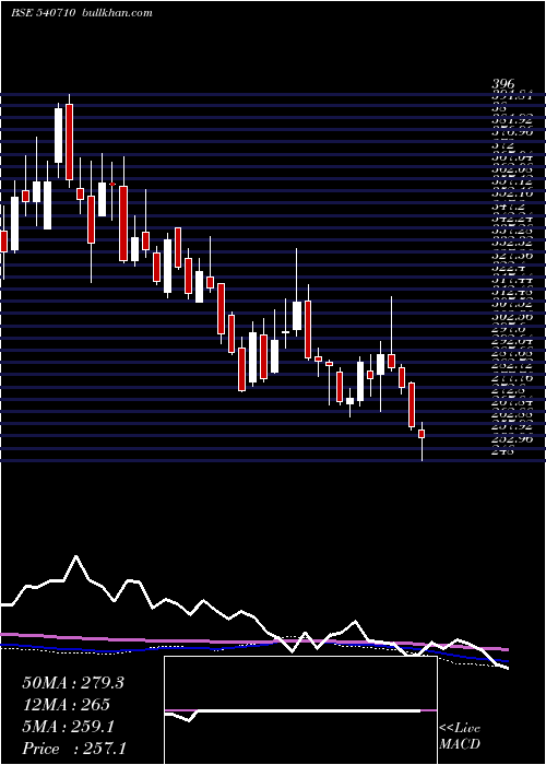 | Date | Closing | Open | Range | Volume | Fri 12 December 2025 | 257.10 (-7.4%) | 279.25 | 248.00 - 279.80 | 0.1747 times | Fri 28 November 2025 | 277.65 (-3.46%) | 284.35 | 268.05 - 314.40 | 0.4741 times | Fri 31 October 2025 | 287.60 (-0.69%) | 290.40 | 265.55 - 292.15 | 0.6713 times | Tue 30 September 2025 | 289.60 (3.02%) | 283.90 | 283.00 - 333.95 | 1.3071 times | Fri 29 August 2025 | 281.10 (-8.24%) | 301.00 | 275.80 - 308.05 | 0.8853 times | Thu 31 July 2025 | 306.35 (-8.29%) | 332.60 | 295.25 - 338.50 | 1.0064 times | Mon 30 June 2025 | 334.05 (1.58%) | 329.10 | 314.05 - 357.65 | 0.9644 times | Fri 30 May 2025 | 328.85 (-5.99%) | 353.30 | 320.05 - 372.25 | 1.5473 times | Wed 30 April 2025 | 349.80 (-0.82%) | 352.65 | 341.60 - 396.00 | 1.12 times | Fri 28 March 2025 | 352.70 (16.83%) | 302.05 | 287.80 - 371.45 | 1.8494 times | Fri 28 February 2025 | 301.90 (-16.93%) | 361.75 | 297.95 - 381.95 | 1.9755 times |