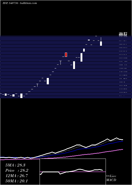 | Date | Closing | Open | Range | Volume | Thu 13 November 2025 | 28.24 (-0.91%) | 27.08 | 27.08 - 29.40 | 2.1053 times | Wed 12 November 2025 | 28.50 (-4.36%) | 28.50 | 28.50 - 28.50 | 0.5263 times | Mon 10 November 2025 | 29.80 (4.56%) | 29.80 | 29.80 - 29.80 | 0.5263 times | Tue 04 November 2025 | 28.50 (4.24%) | 28.50 | 28.50 - 28.50 | 0.5263 times | Fri 31 October 2025 | 27.34 (-4.97%) | 27.34 | 27.34 - 27.34 | 0.5263 times | Wed 29 October 2025 | 28.77 (5%) | 28.60 | 28.60 - 28.77 | 1.5789 times | Mon 27 October 2025 | 27.40 (4.78%) | 27.40 | 27.40 - 27.40 | 0.5263 times | Tue 21 October 2025 | 26.15 (4.98%) | 25.41 | 25.41 - 26.15 | 1.5789 times | Mon 20 October 2025 | 24.91 (4.97%) | 22.55 | 22.55 - 24.91 | 1.5789 times | Wed 15 October 2025 | 23.73 (0%) | 23.73 | 23.73 - 23.73 | 0.5263 times | Mon 13 October 2025 | 23.73 (5%) | 23.73 | 23.73 - 23.73 | 1.5789 times |