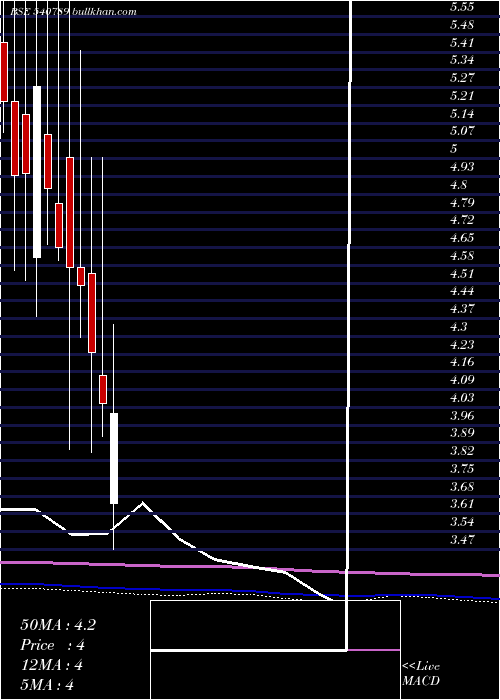 | Date | Closing | Open | Range | Volume | Fri 26 December 2025 | 4.00 (0.25%) | 4.11 | 3.81 - 4.11 | 0.4021 times | Wed 24 December 2025 | 3.99 (0%) | 3.99 | 3.99 - 3.99 | 0.7377 times | Tue 23 December 2025 | 3.99 (-1.72%) | 3.70 | 3.70 - 4.03 | 0.1036 times | Mon 22 December 2025 | 4.06 (2.53%) | 3.76 | 3.76 - 4.33 | 1.0692 times | Fri 19 December 2025 | 3.96 (-0.5%) | 4.06 | 3.95 - 4.31 | 0.8142 times | Thu 18 December 2025 | 3.98 (2.84%) | 3.80 | 3.80 - 4.29 | 1.4277 times | Wed 17 December 2025 | 3.87 (-1.02%) | 4.00 | 3.85 - 4.00 | 0.4525 times | Tue 16 December 2025 | 3.91 (-4.4%) | 4.17 | 3.47 - 4.17 | 2.36 times | Mon 15 December 2025 | 4.09 (3.02%) | 4.15 | 3.75 - 4.15 | 1.0378 times | Fri 12 December 2025 | 3.97 (-1.73%) | 4.02 | 3.90 - 4.14 | 1.5954 times | Thu 11 December 2025 | 4.04 (1%) | 4.00 | 3.97 - 4.10 | 0.6972 times |