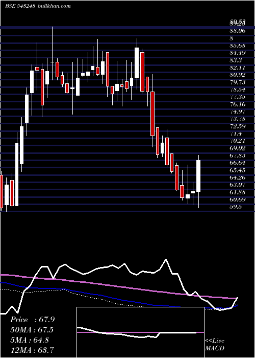 | Date | Closing | Open | Range | Volume | Fri 12 December 2025 | 67.87 (4.59%) | 64.91 | 64.40 - 68.68 | 2.4255 times | Thu 11 December 2025 | 64.89 (4.19%) | 62.40 | 62.20 - 66.06 | 2.1991 times | Wed 10 December 2025 | 62.28 (-2.63%) | 64.04 | 61.79 - 67.64 | 2.0351 times | Tue 09 December 2025 | 63.96 (5.13%) | 60.79 | 60.65 - 65.80 | 1.1422 times | Mon 08 December 2025 | 60.84 (-3.09%) | 62.80 | 60.15 - 63.59 | 0.2387 times | Fri 05 December 2025 | 62.78 (0.34%) | 62.60 | 62.41 - 64.25 | 0.5017 times | Thu 04 December 2025 | 62.57 (2.26%) | 61.19 | 60.61 - 63.75 | 0.3092 times | Wed 03 December 2025 | 61.19 (-2.25%) | 62.60 | 61.00 - 62.84 | 0.3639 times | Tue 02 December 2025 | 62.60 (1.02%) | 61.30 | 61.30 - 63.70 | 0.5635 times | Mon 01 December 2025 | 61.97 (-0.51%) | 62.49 | 61.57 - 62.51 | 0.221 times | Fri 28 November 2025 | 62.29 (0.68%) | 61.87 | 61.20 - 62.85 | 0.366 times |