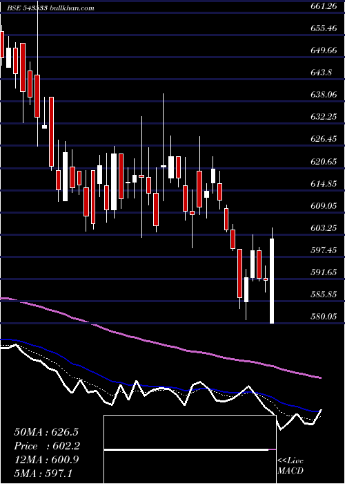 | Date | Closing | Open | Range | Volume | Wed 24 December 2025 | 591.40 (-0.08%) | 591.90 | 588.30 - 595.15 | 0.4537 times | Tue 23 December 2025 | 591.85 (-1.21%) | 599.10 | 591.20 - 600.00 | 0.5263 times | Mon 22 December 2025 | 599.10 (1.18%) | 592.10 | 591.15 - 603.15 | 0.7671 times | Fri 19 December 2025 | 592.10 (0.89%) | 585.75 | 581.00 - 594.15 | 0.6231 times | Thu 18 December 2025 | 586.90 (-2.11%) | 599.45 | 584.00 - 599.50 | 2.1592 times | Wed 17 December 2025 | 599.55 (-0.81%) | 604.50 | 599.00 - 606.00 | 0.6822 times | Tue 16 December 2025 | 604.45 (-1.28%) | 610.05 | 604.00 - 611.00 | 0.7421 times | Mon 15 December 2025 | 612.30 (-1.3%) | 616.60 | 610.00 - 619.75 | 1.2427 times | Fri 12 December 2025 | 620.35 (0.92%) | 616.80 | 614.05 - 623.60 | 1.7532 times | Thu 11 December 2025 | 614.70 (0.69%) | 613.00 | 607.50 - 616.70 | 1.0506 times | Wed 10 December 2025 | 610.50 (0.34%) | 619.75 | 608.55 - 628.80 | 3.4379 times |